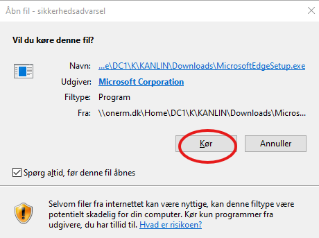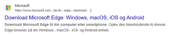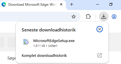 Så er Microsoft Edge installeret, og du kan finde den enten under “programmer”, på skrivebordet eller søge den frem i din søgelinje.