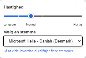 Læseindstillinger. Indstil hastighed for oplæsning, stemme m.m.